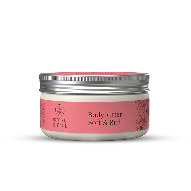 De Bodybutter Soft & Rich is een must-have voor een voelbaar zachte en soepele huid. De rijke formule met waardevolle vetten en oliën in combinatie met belangrijke vochtinbrengers, biedt de huid verzorging en ondersteunt de natuurlijke vochtbalans van de huid. De elegante geur van amandelbloesem streelt de zintuigen, omhult het lichaam en zorgt zo voor een extra goed gevoel. Ook uitermate geschikt voor de droge huid!