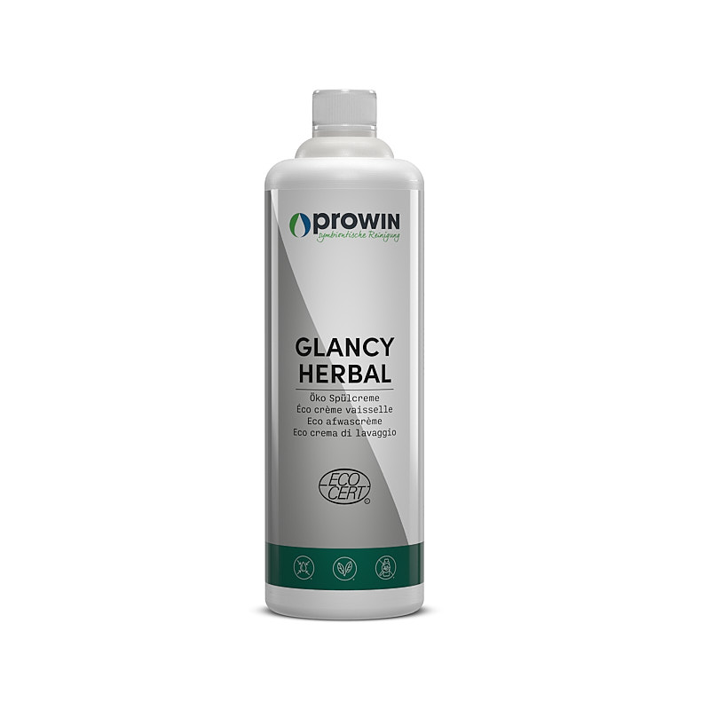 GLANCY HERBAL lost tijdens het afwassen etensresten, vet en aangekoekt vuil op met de plantaardige suikertensiden in het product. Perfect afwasresultaat en glanzende glazen zonder kalkvlekken. De compositie van parfumolie van natuurlijke, etherische oliën geeft een aangename kruidengeur. GLANCY HERBAL is met zijn bewezen huidverdraagzaamheid en doordat het vrij is van kleur- & conserveringsstoffen de onmisbare hulp in elk huishouden.